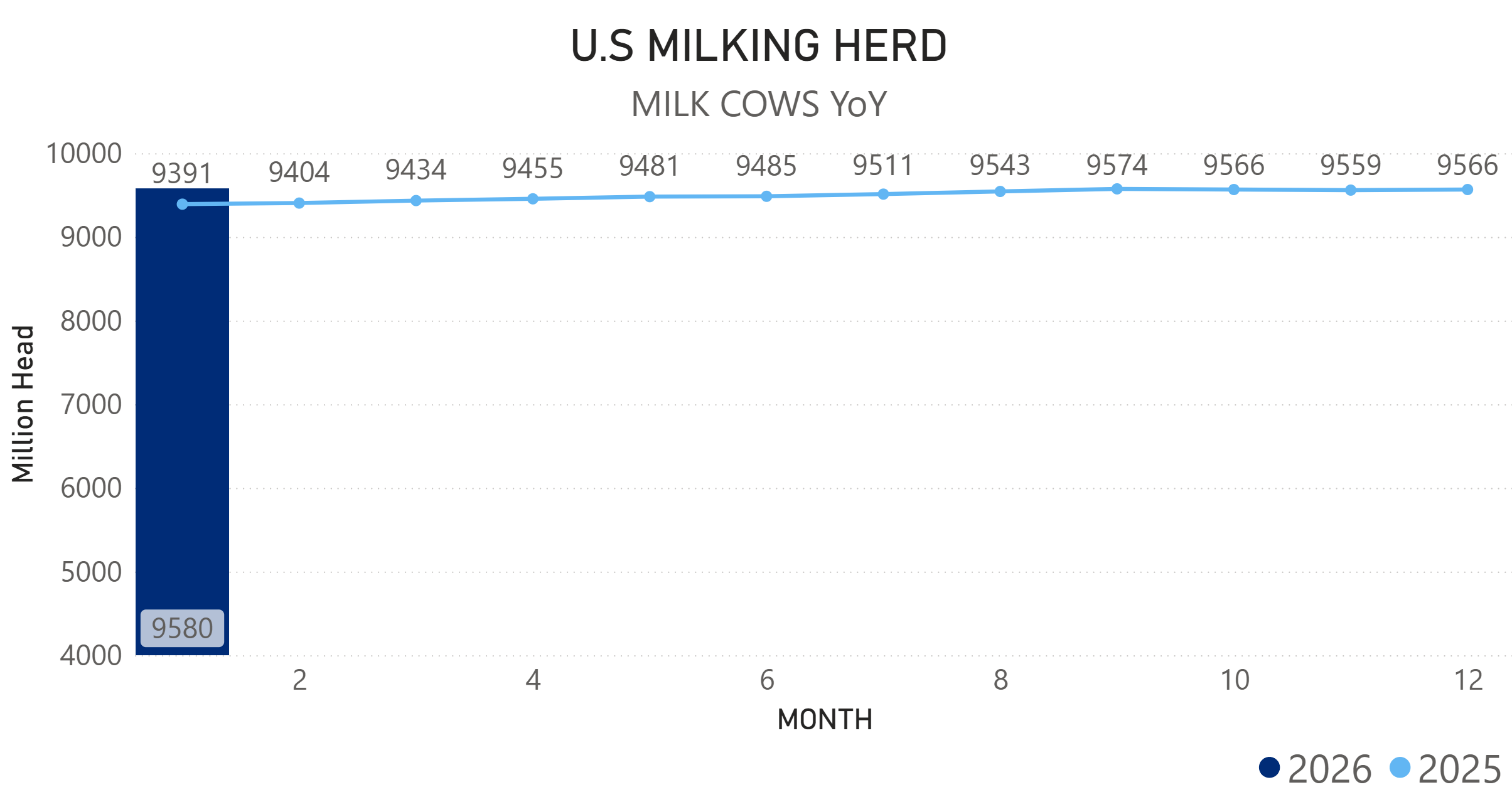 Growth seems to be driven primarily by herd expansion and productivity gains. In New York, milk production grew 3.4%, reflecting a 3.7% growth in herd size despite slightly lower milk per cow (YoY January).